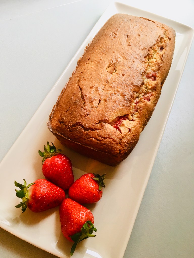 Je raffole des fraises, sous toutes leurs formes. J’avoue que les mettre dans un cake passant au four était un pari un peu dingue, de savoir si la fraise allait tenir .. ou pas !